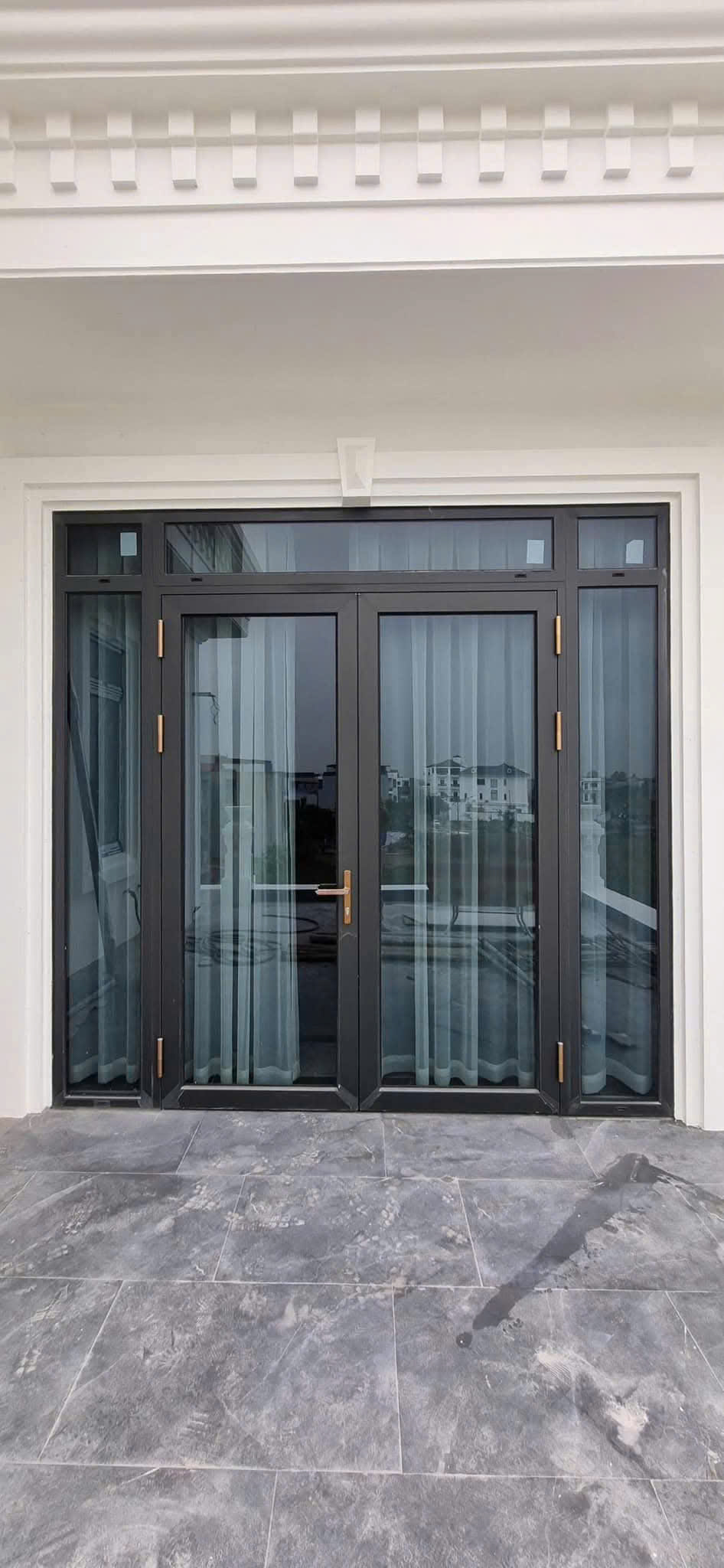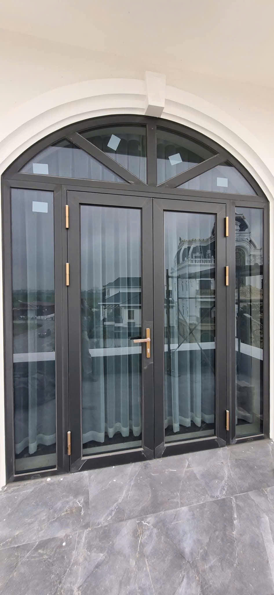 Toàn bộ công trình sử dụng nhôm Lumal Alumium cao cấp màu xám đá bảo hành 10 năm bề mặt sơn.