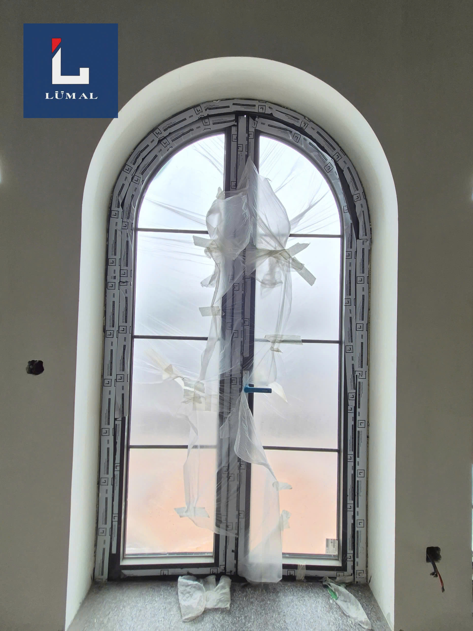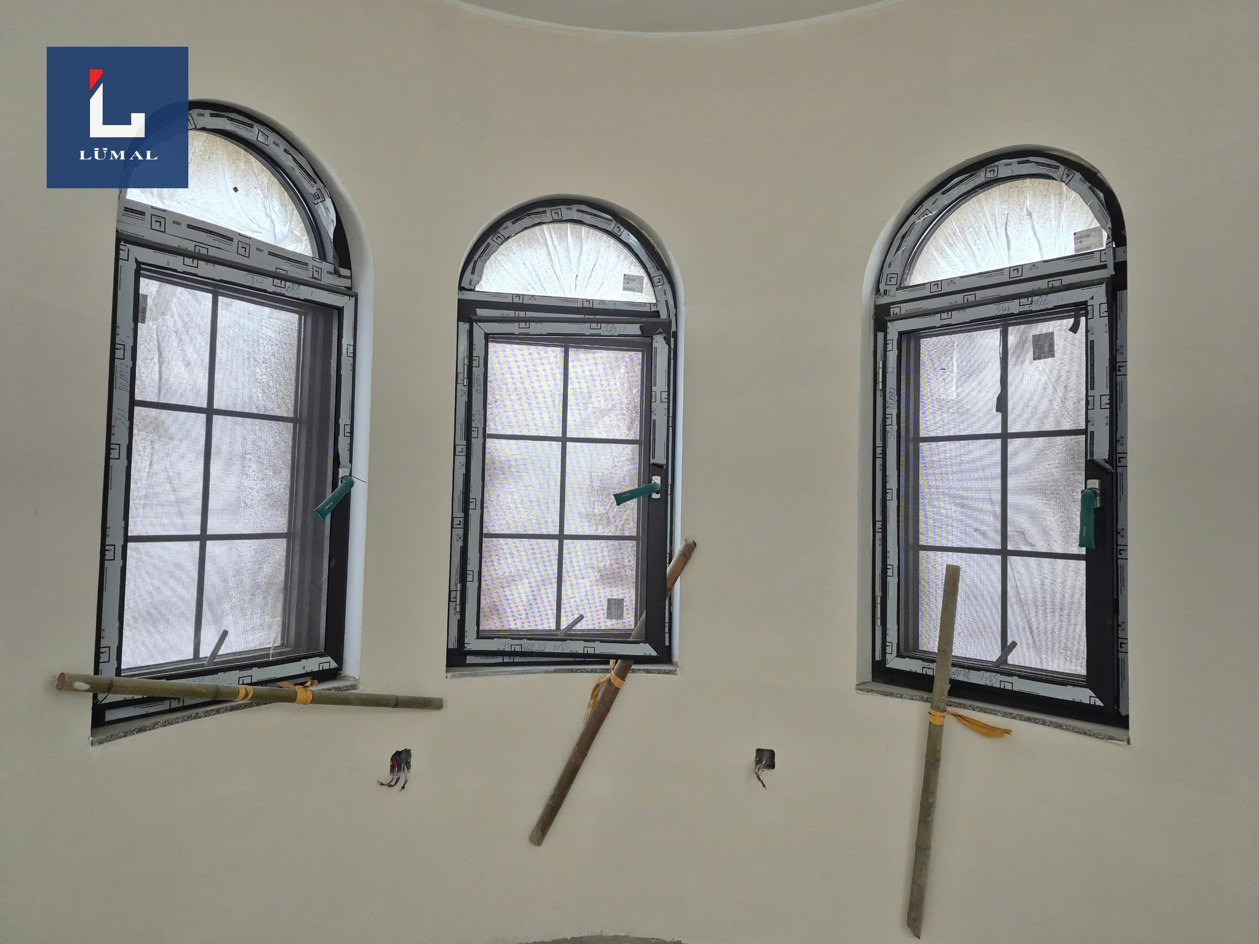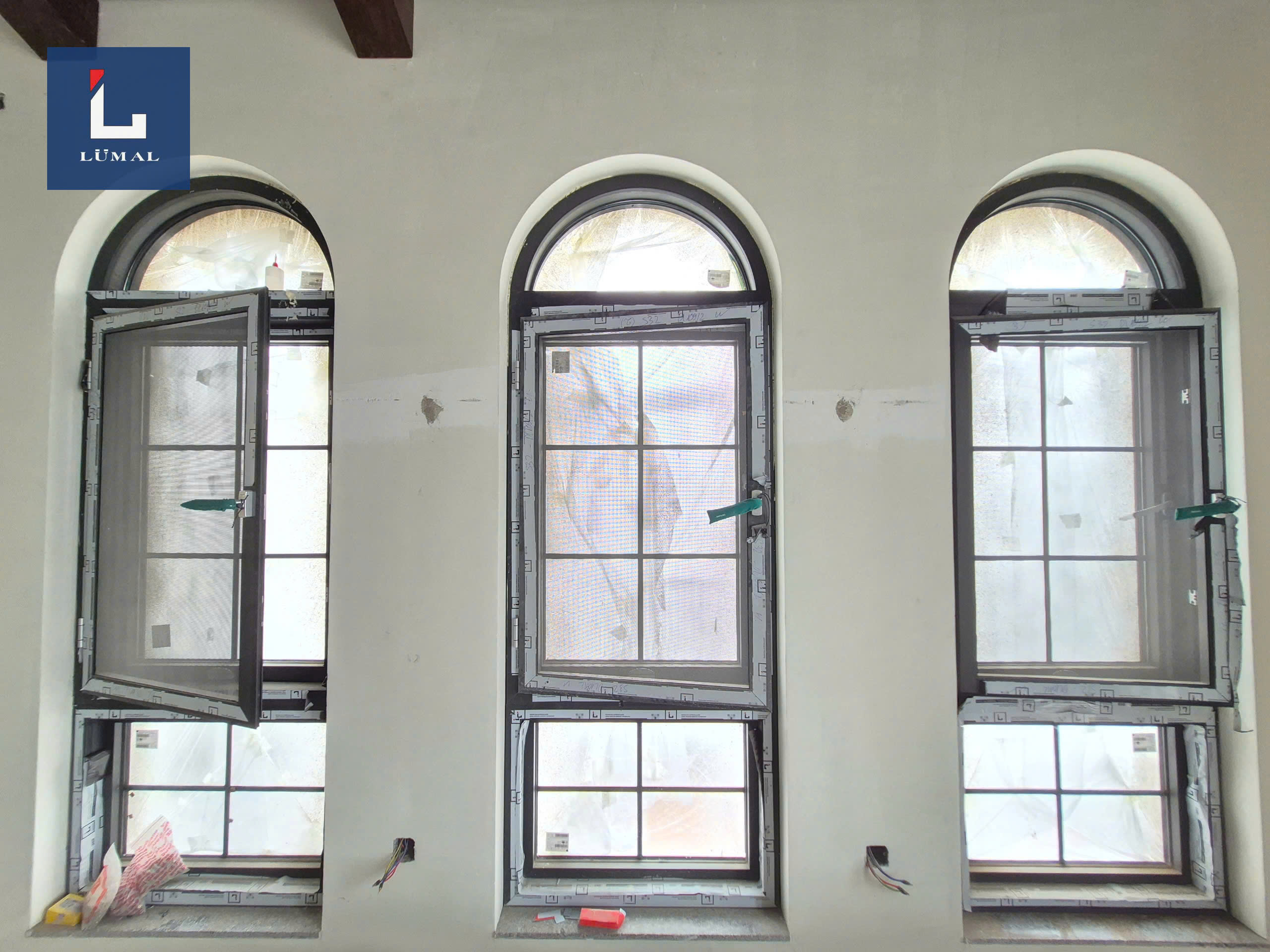 + Cửa đi mở quay Lumal hệ L75 uốn vòm.