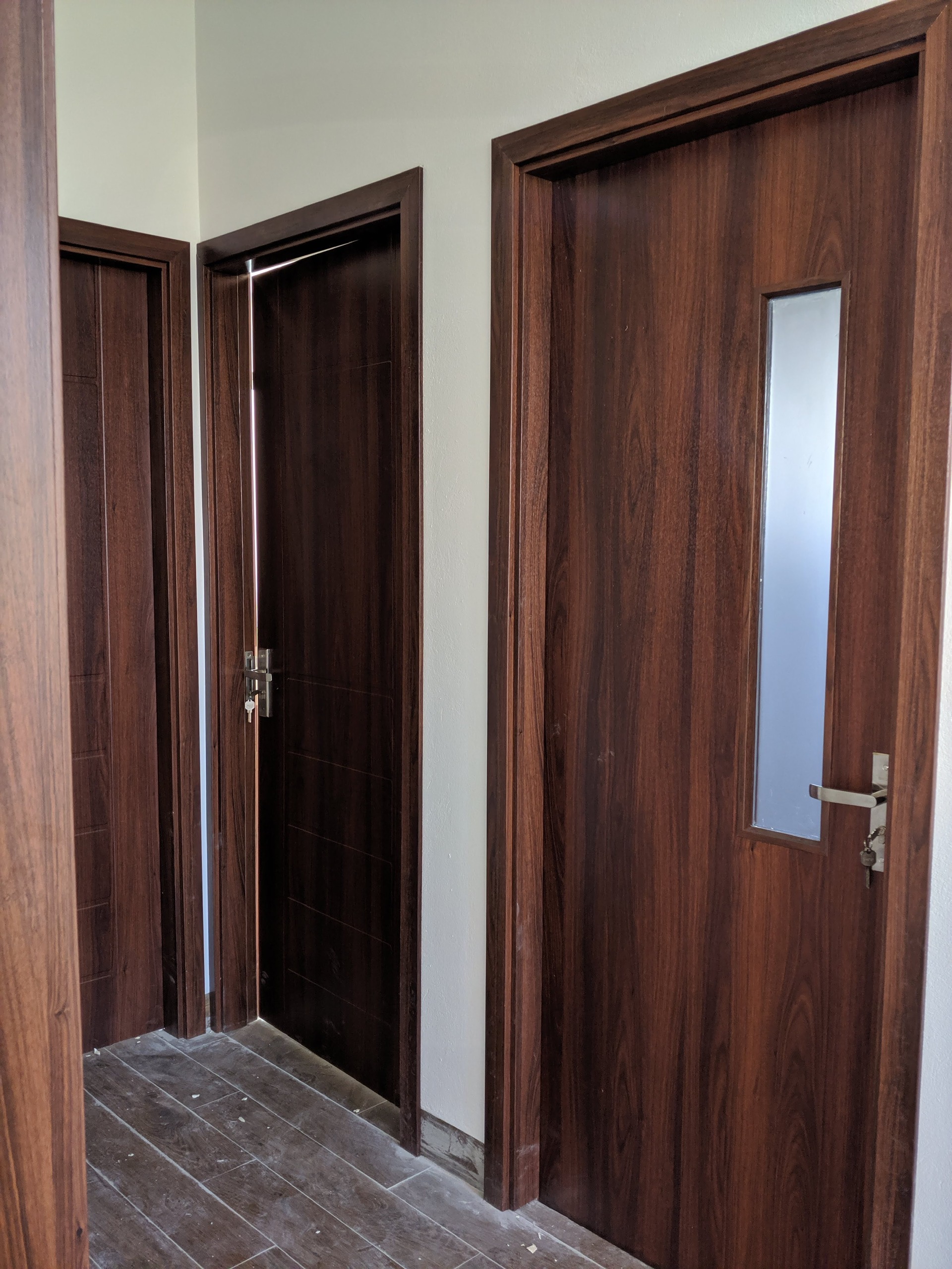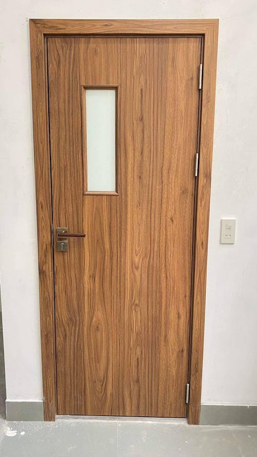 3. Hoàn thiện bề mặt: Bề mặt cửa thường được phủ một lớp film PVC (Polyvinyl Chloride) với nhiều màu sắc và vân gỗ khác nhau, tạo vẻ đẹp thẩm mỹ giống như gỗ thật, đồng thời tăng khả năng chống nước, chống trầy xước và dễ dàng vệ sinh. Một số loại cửa cao cấp có thể được sơn PU (Polyurethane) để tăng độ bền và tính thẩm mỹ.